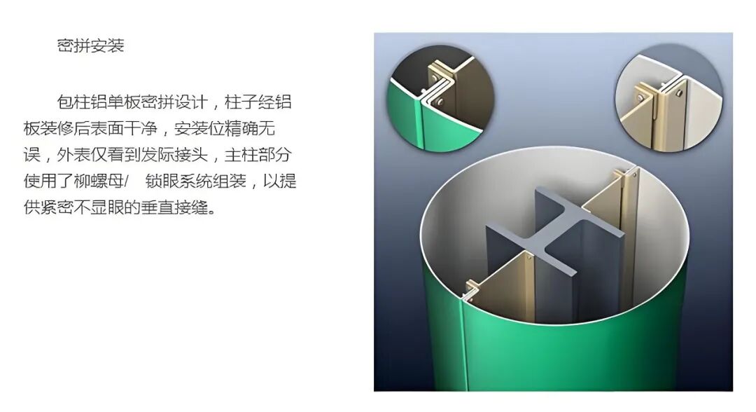 所谓的密拼铝单板,也称为无缝铝单板;实则上其间也有一些细小的缝隙,但在安装时,会尽量使铝板与铝板紧密拼接,不留明显的缝隙,因此得名“密拼”。对于开缝铝单板,大多需要使用玻璃胶或密封结构胶进行处理,但密拼铝单板则无需这样,因此在视觉效果上更加美观。要想加工出优质的密拼铝单板,对铝板平整度、加工尺寸、和颜色喷涂等都有一定的要求,在一定的许可范围内操作,避免安装完成后出现问题导致需要返工,因为密拼铝单板的返工会很麻烦,一旦返工,可能需要拆除相邻的几个铝板,工作量很大。而安装密拼铝单板也是有一定的技术含量和技巧的,特别在接近完工时的最后几块铝板,一定要在工程基本完成时再量尺寸生产并进行安装,这样才能尽可能避免在收尾阶段出现问题。